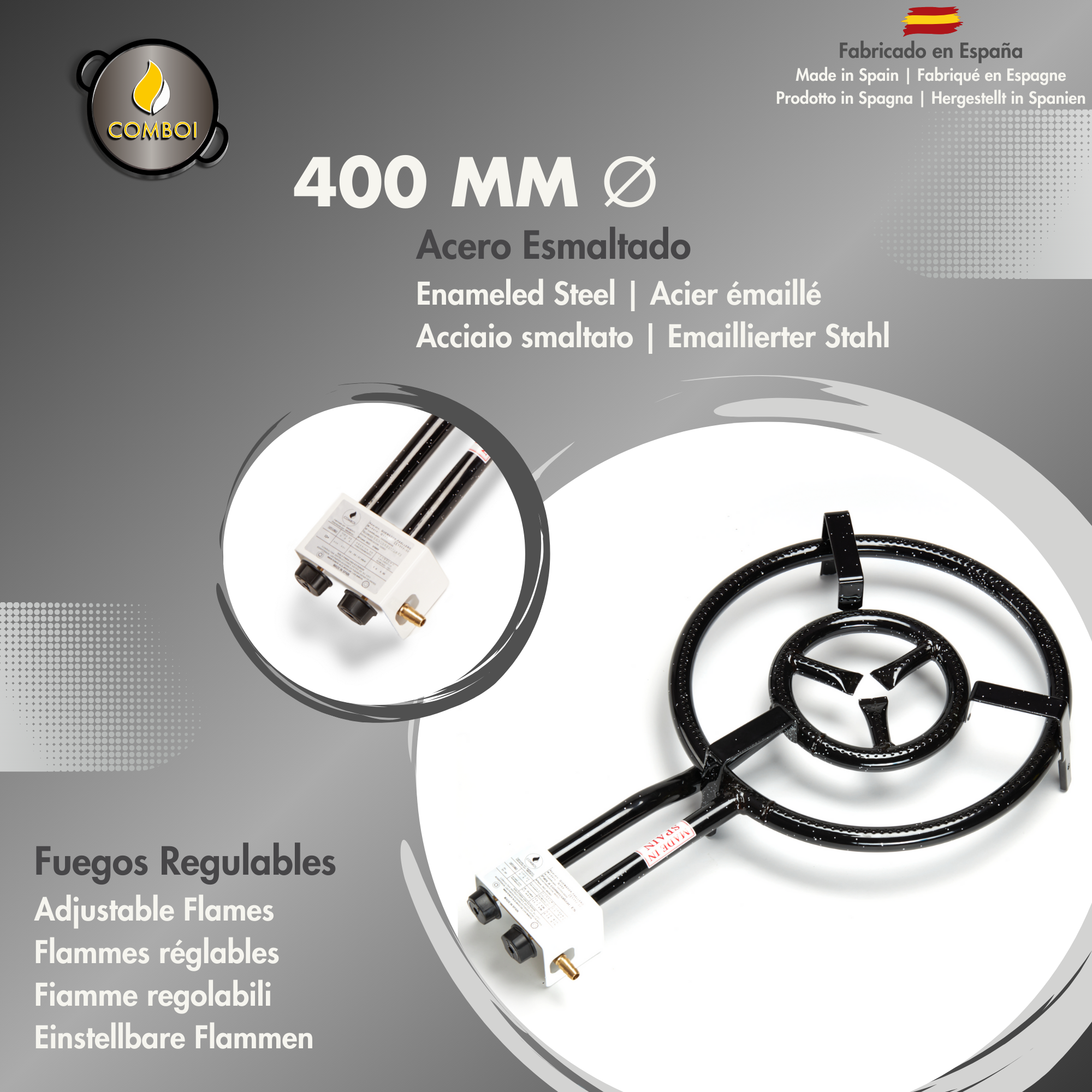 - Quemador de 40 cm de diámetro con dos fuegos
