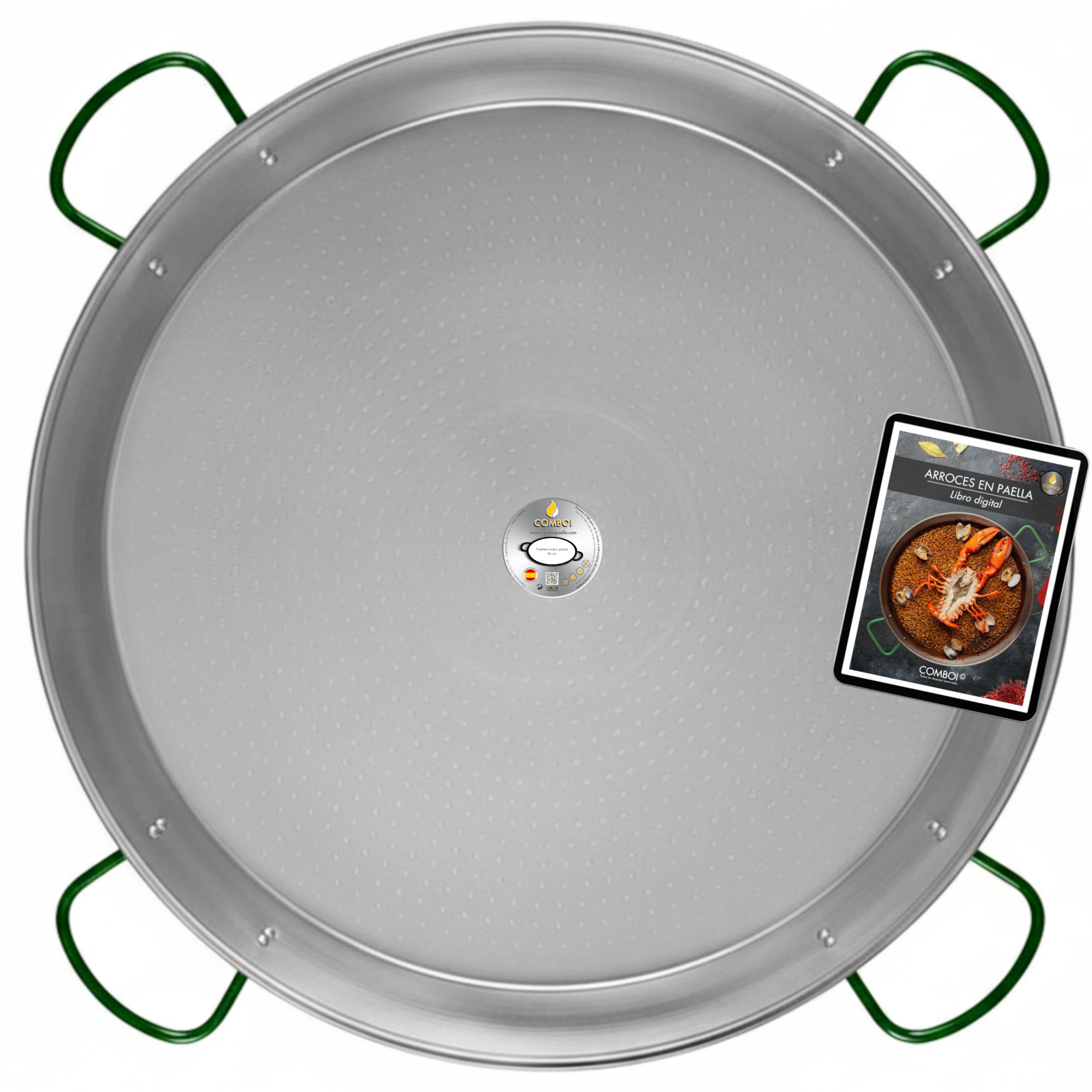 • 🥘 Paellera de acero pulido de 90 cm de diámetro (hasta 25 personas).